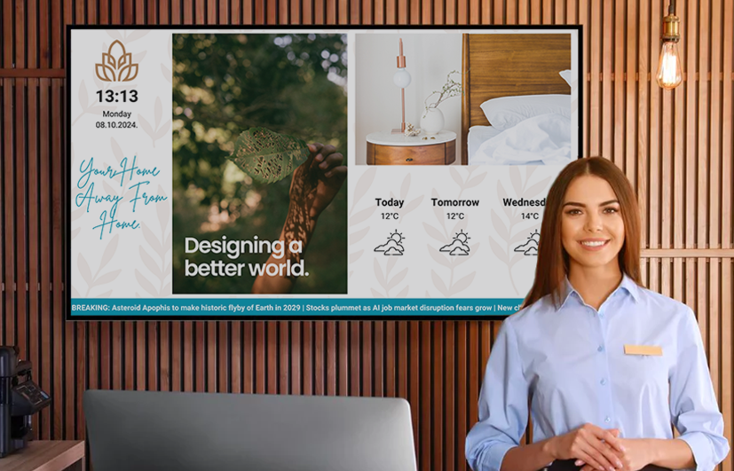 Digitalni info monitori u raznim formatima prilagođenim otvorenim i zatvorenim prostorima u hotelu i oko njega.