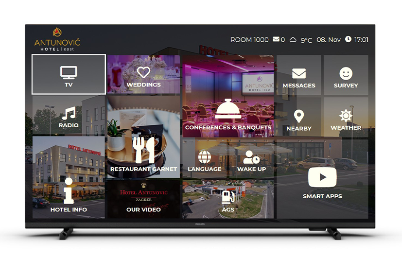Interaktivni TV sustav za promociju i informiranje gostiju, zabavu, online streaming i pristup sadržajima visoke kvalitete.